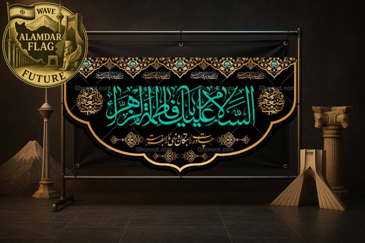 تولید انواع کتیبه و پرچم ایام فاطمیه | کد 2059 | چاپ روی پارچه مخمل و ساتن | شرکت علمدار