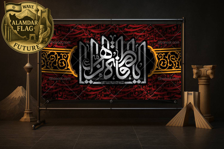 تولید انواع کتیبه و پرچم ایام فاطمیه | کد 2063 | چاپ روی پارچه مخمل و ساتن | شرکت علمدار