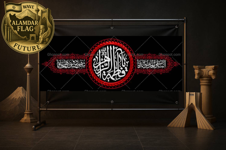 تولید انواع کتیبه و پرچم ایام فاطمیه | کد 2040 | چاپ روی پارچه مخمل و ساتن | شرکت علمدار