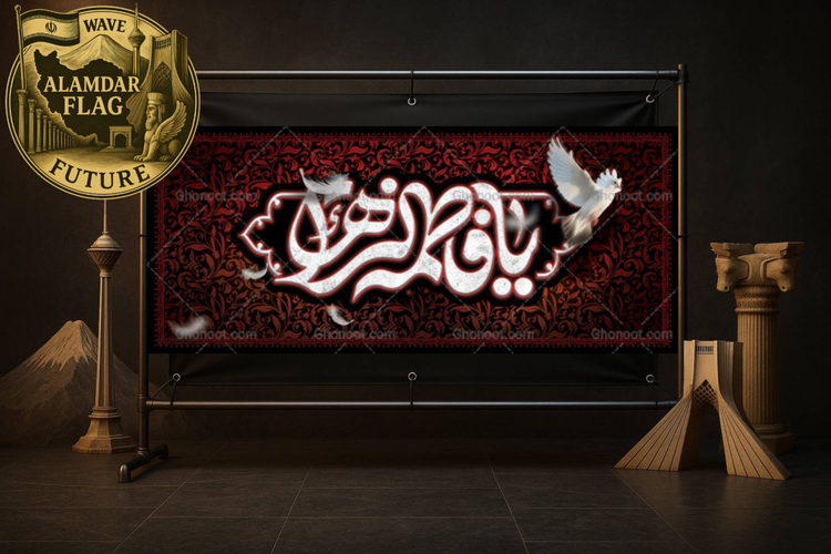 تولید انواع کتیبه و پرچم ایام فاطمیه | کد 2043 | چاپ روی پارچه مخمل و ساتن | شرکت علمدار