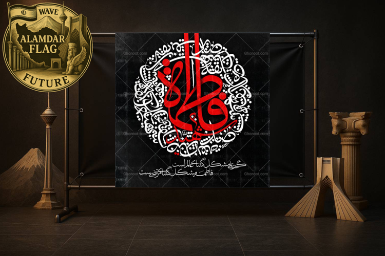 تولید انواع کتیبه و پرچم ایام فاطمیه | کد 2044 | چاپ روی پارچه مخمل و ساتن | شرکت علمدار