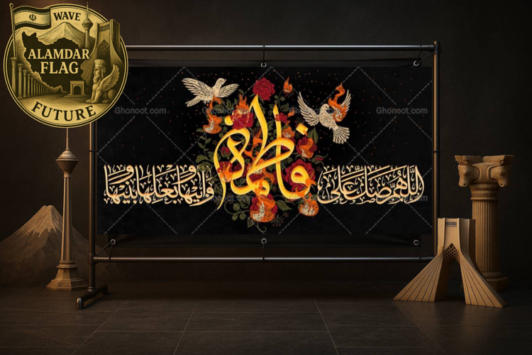 تولید انواع کتیبه و پرچم ایام فاطمیه | کد 2046 | چاپ روی پارچه مخمل و ساتن | شرکت علمدار