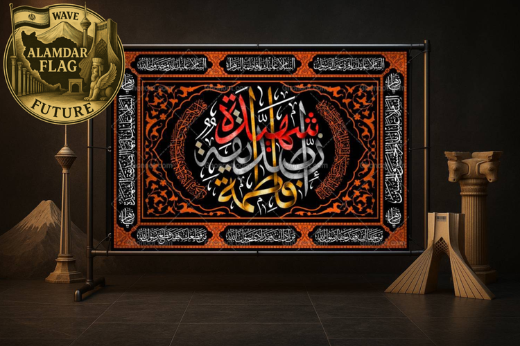 تولید انواع کتیبه و پرچم ایام فاطمیه | کد 2047 | چاپ روی پارچه مخمل و ساتن | شرکت علمدار