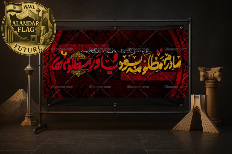 تولید انواع کتیبه و پرچم ایام فاطمیه | کد 2048 | چاپ روی پارچه مخمل و ساتن | شرکت علمدار