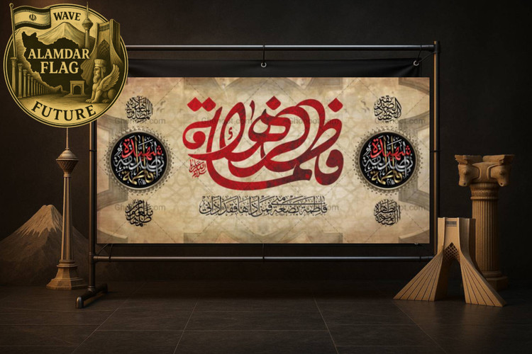 تولید انواع کتیبه و پرچم ایام فاطمیه | کد 2057 | چاپ روی پارچه مخمل و ساتن | شرکت علمدار